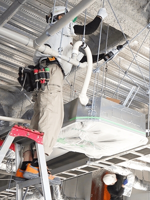 松澤 都内の飲食店を専門に、厨房の換気と空調に関する設計・施工を請け負っています。工事は水道や電気などの各業者と連携しながらバランスを配慮。店をつくるときや換気まわりの調子が悪いとき、メンテナンスが必要なときなどにご依頼いただけます。