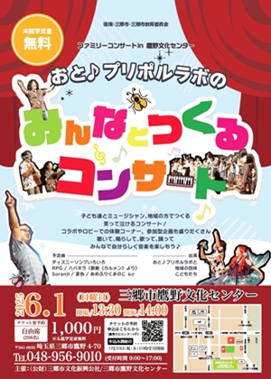 由紀 「音であそぼ、であお、つながろ」が合言葉。これまで、学校や地域の施設などで、人とのつながりを生む『音あそび小屋』や誰でも舞台にあがって挑戦できる『みんなとつくるコンサート』といった参加型の音楽会を開いてきました。