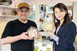 上板橋に昨年11月オープンしたサンドイッチ専門店『大サンドイッチ製作所』。手作りにこだわり、ボリューム満点のデカ盛りサンドイッチが話題で、メニューのほとんどが2個で500円(1個300円)と驚きのワンコイン!常時15種類以上のサンドイッチが並び、ガッツリ系、サラダ系、デザート系と種類も豊富で、女性やお年寄りなど幅広い層から支持を受ける。人気は「スペシャルエッグ」。荒目に砕いた茹でたまごに、低温料理した国産地鶏の胸肉を混ぜたサンドイッチは絶品。「今後は、デリバリーやオードブルなどにも力を入れて、向かいの弁当店と共に地域の方々に充実した食を提供していきたい」と話す。