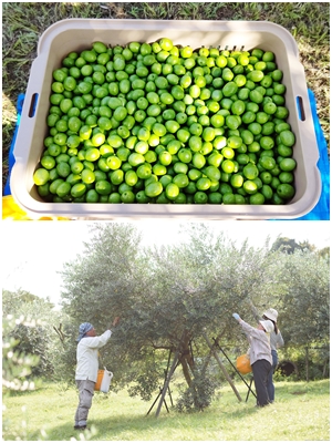 M田 20年前、私の父は新種植物の登録などに携わる弁理士として活動し、頻繁に海外出張していました。その頃、「オリーブオイルが身体に良い」との情報を得て、日本での栽培を考えたのです。私も本格的に栽培を手伝うようになり、小豆島で学び、二宮町に協力を要請。地元の応援もあり、100本の木を植えたのがはじまりで、現在は約2fの土地に750本を育てています。創業時から搾油機を導入し、選別から搾油まで一貫した丁寧さを目指しています。