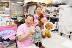 作田 この子が大好きで、子どものように育てています。犬の洋服は茂原市の工芸品として認定書も出ており、『COCOlatte』というブランドで販売しています。個性にあわせた、できるだけストレスのかからない、生地のしっかりした着心地のよい仕立てで、デザインの特徴としては、フリルを多くあしらっています。