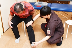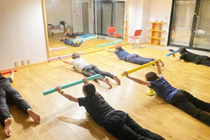 最近では、無料の「健康セミナー」を各地で開き、人々にストレッチの重要性を伝えている眞榮城氏。本部には施術室とトレーニング室が設けられ、眞榮城氏の指導のもと、様々な施術や少人数での運動がなされている。そこには眞榮城メソッド≠ニも言うべき考え方が浸透している。