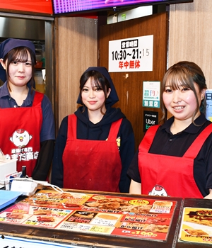 西口 一案人気は、ニンニクの効いた醤油タレです。女性には塩味も人気。明太マヨ、高菜などの変わり種も出しており、バレンタインの時期は、学生やお勤めの方を中心にチョコ味が人気でした。