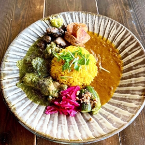 カレーを試食させていただきました。スパイシーでやみつきになる味。カレーの食材も地元産にこだわっているそう。
