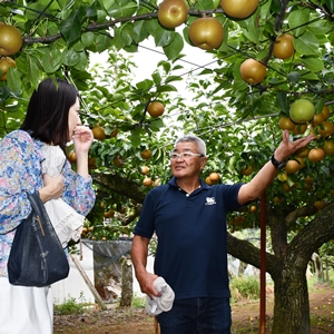梨にもこだわり、『恵水(けいすい)』という茨城県が品種改良し開発したオリジナル品種を主力として栽培しているそう。おいしそうな梨でした。