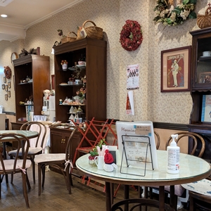 近鉄奈良駅から徒歩1分の場所に佇む英国風カフェ。英国カントリー調のインテリアに、穏やかな音楽が流れる店内は、女性一人でも気兼ねなく過ごせる落ち着いた空間だ。奈良公園などの観光地からも近く、街歩きの合間にひと息つく場所として親しまれている。