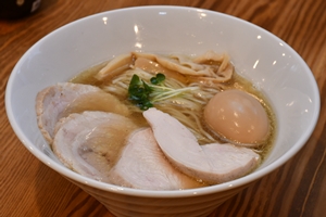 ラーメン激戦区として知られる日野駅周辺に、2025年9月誕生した『麺屋豊道』。店名には亡き父への敬意と決意が込められている。看板は澄んだ旨みが際立つ鶏清湯ラーメン(塩・醤油)と、コク深い鶏白湯(旨甘味・醤油)。さらに昆布水に浸したつけ麺やご飯物、季節限定メニューまで揃え、幅広い嗜好に応える。
