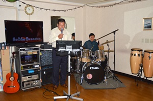 実際、小方氏の生ドラムで一曲歌わせていただきました。広い空間、良い音響設備、そして、生ドラム、気持ちよく歌うことができました。まるで、プロ歌手になったような気分が味わえたね。一度この快感を体感すると病みつきに!!