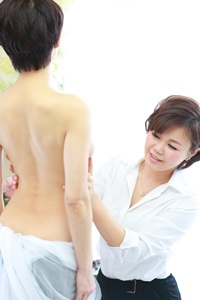 おそるおそるベッドにうつぶせになると、背中を揺らされながら身体のバランスを整えてもらう、次に仰向けになって乳腺の流れをスムーズに変える。最後に胸式呼吸をしながら胸を膨らましていく。次第にバストがUPしていくのが分かる。しかも弾力を帯びて、跳ね返ってくるのだ。思わず「私のバスト、はじけてませんか!?」と聞く。鏡を見てさらにびっくり・・・「これ誰のバスト?」。